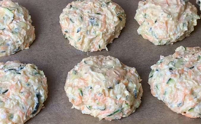 3.  И выкладываю на противень, застеленный бумагой для выпечки. Кабачковые котлеты я отправляю запекаться в разогретую духовку до 200° Цельсия или 392 градусов Фаренгейта. Посмотрите, какая красота у нас получилась через 20 минут. Правда, время запекания может отличаться в зависимости от вашей духовки. Пахнет ну очень аппетитно! И получается ну очень вкусно! Я рекомендую вам попробовать это блюдо по простому рецепту из кабачков!Видео рецепт ютуб ниже 👇
