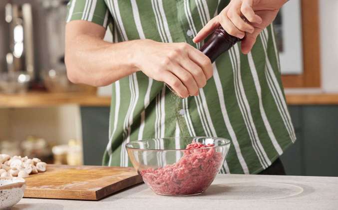 2. Нарезать мясо средней толщины слайсами и пропустить через мясорубку. Фарш посолить и поперчить, перемешать руками и отбить для плотности. Сформировать из небольшого количества фарша тефтели и отправить в суп. Таким образом сделать тефтели из всего фарша и отправить в суп, довести до кипения и варить ещё 10 минут. Отправить 2 ст. л. плавленого сыра в суп и перемешать до полного растворения.