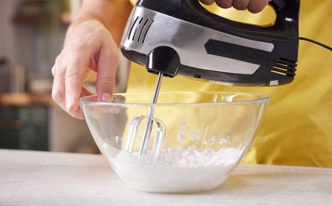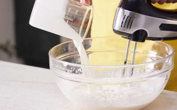 4. Выжать в глазурь сок лимона (1/5 шт.) и перемешать миксером. Добавить мак и перемешать. Перевернуть решётку из духовки на дужки.