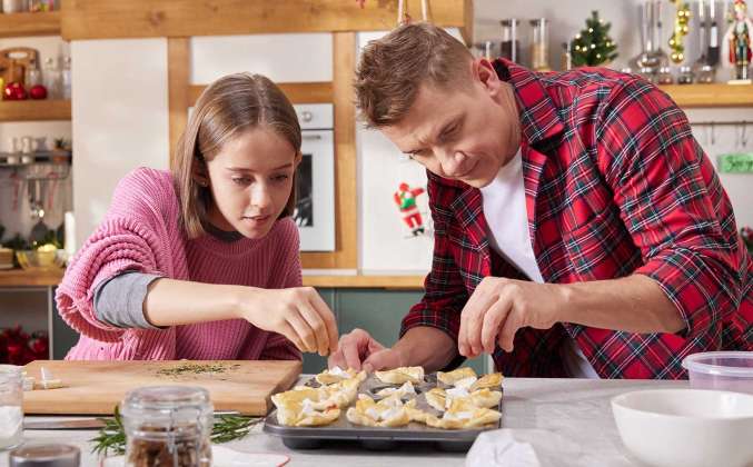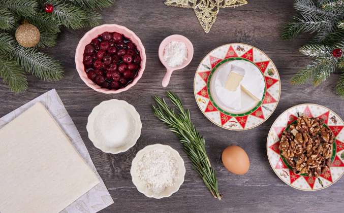 3. Мелко нарубить листики розмарина и посыпать сверху каждую тарталетку. Тарталетки отправить запекаться в разогретую до 180 градусов духовку на 4 минуты. Вытащить каждую тарталетку из формочки и переложить на новогоднюю большую тарелку. Мелко нарубить грецкие орехи и украсить каждую тарталетку.Просто Кухня рецепты с 2020-2022