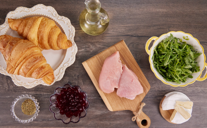 Как приготовить Круассан с индейкой, сыром камамбер и брусничным вареньем рецепт пошагово
