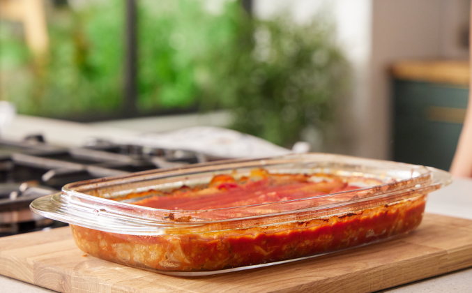 Вам понадобится квадратная или прямоугольная форма для запекания с высокими бортами