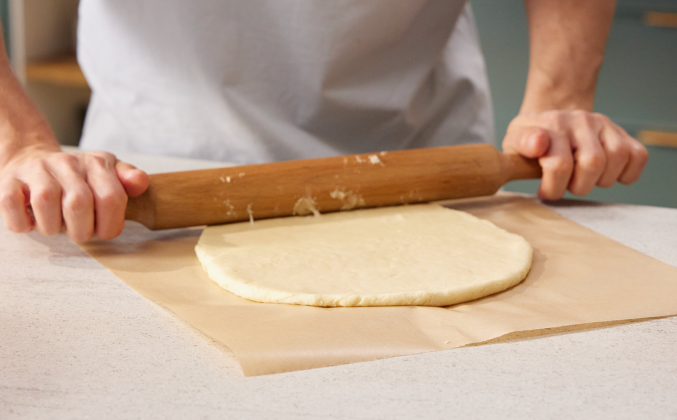 2. У лимонов отрезать попки и нарезать на небольшие ¼ кружочки, удаляя по возможности крупные косточки. Отправить кусочки лимона в куттер и перебить. Переложить в большую миску. Совет от шефа: За счёт лимонной кислоты, яблоки не потемнеют К перебитым лимонам натереть на крупной тёрке яблоки и перемешать. Тесто (2/3) хорошенько подмять, переложить на пергамент и раскатать скалкой тесто в круглый тонкий пласт диаметром, подходящим для дна и бортов формы.