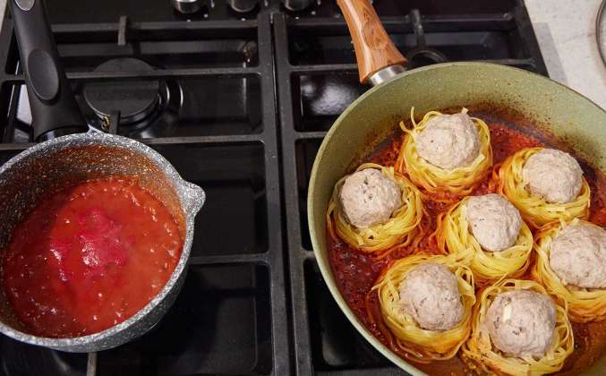 Гнёзда с фаршированными тефтелями Просто Кухня