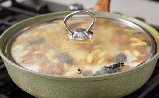 1. Миндаль залить кипятком на 15-30 минут и снять шкурку. Рис хорошенько промыть водой, чтобы убрать лишний крахмал. В кастрюле довести до кипения большое количество воды, посолить и отправить рис, перемешать и варить до полуготовности на среднем нагреве в течение 5-7 минут. Отправить на сковороду с высокими бортами кусок сливочного масла (180 г), добавить кардамон и гвоздику, обжарить на медленном нагреве.