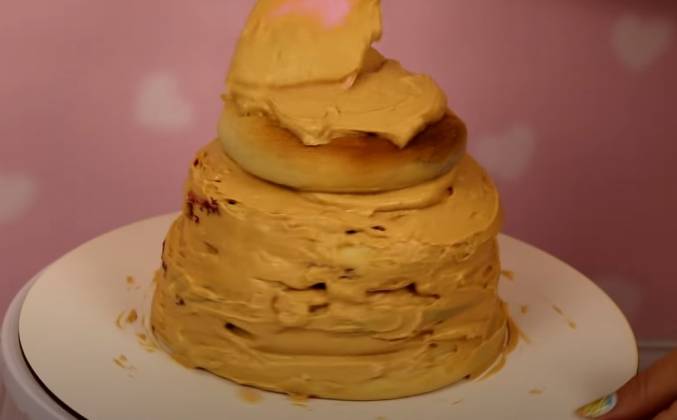 5. Затем добавляю вареную сгущенку и взбиваю еще минуты 2-3. Здесь вижу, что крем жидковат, поэтому добавляю еще загуститель. Крем готов. Собираю торт, чередуя коржи с кремом. Обильно покрываю кремом все коржи, и также весь торт снаружи. Теперь торту надо дать пропитаться 6-8 часов. После чего можно наслаждаться этим вкусом, знакомым с детства. Песочное тесто, вишни и сметанный карамельный крем - это очень вкусно. Торт получается в меру сладкий. Сладость по 5-бальной шкале – я оцениваю 3 балла, для любителей кисленького. Спасибо за просмотр!Видео рецепт ютуб ниже 👇