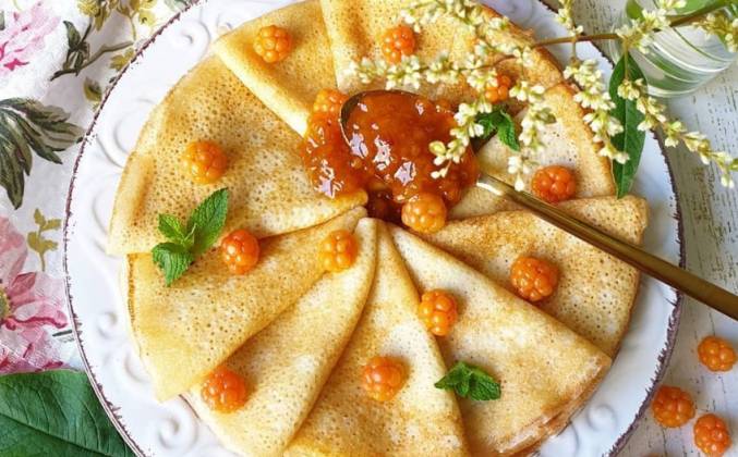 Тут у меня на завтрак ажурные блинчики с морошковым вареньем!🌞🥞 Но речь пойдёт не о блинчиках, а о волшебном варенье, которое варит моя мамочка. Как варить варенье из морошки рецепт простой на зиму. Друзья, кто из вас пробовал морошку? А пробовали ли вы когда-нибудь варенье из морошки?🏵 Ооо, это вкус севера 🌌! Ещё её называют: "Арктическая малина", "Северный апельсин" или "Царская ягода" 👑. На финских монетах номиналом в 2 евро присутствует изображение морошки, в Скандинавии эта ягода ценится на вес золота 💰. Растёт она и у нас, в карельских лесах, а точнее на болотах. Сама ягода очень необычного вкуса, непохожа ни на одну лесную ягоду. Мне кажется, если у карельской природы был бы вкус, то это был бы вкус морошки. 😊 Безусловно, эта северная ягода представляет собой сокровищницу полезных и питательных веществ. А варенье из неё получается просто волшебное. Расскажу вам про рецепт, он вроде и простой, но как и у любой хозяйки, у моей мамочки тоже есть свои секретики.😉 Для того чтобы сварить 2 литра морошкового варенья, нам понадобится: .
