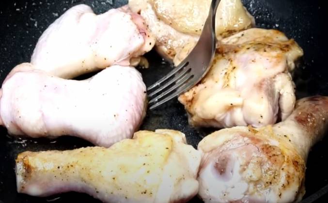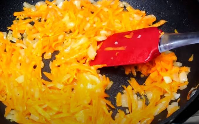 2. Кладем на сковороду, жарим до золотистого цвета с двух сторон, курица уже будет практически готова. Снимаем со сковороды и кладем к гороху, варим до готовности мяса. По времени занимает минут 20, 2 клубня картофеля порежем соломкой, одну морковь натрем на крупной терке, одну две луковицы порежем кубиками, на сковороду где жарилась курица кладем лук и жарим до полупрозрачности.