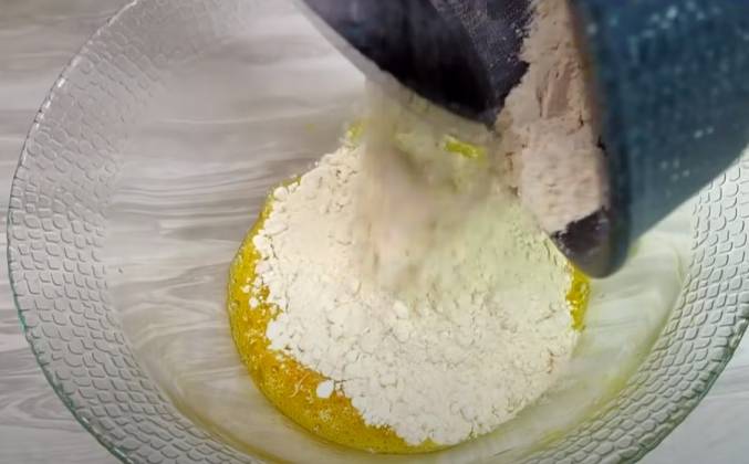 2. Теперь добавляем воду, 2 столовые ложки и продолжаем перетирать, чтобы образовались крошки покрупнее, если потребуется нужно добавить еще воды, в кастрюлю наливаем молоко и добавляем воду, я всегда наливаю в пропорции один к одному, объем жидкости у меня полтора литра.