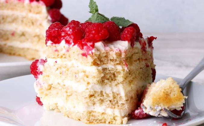 Яблочный торт с малиной