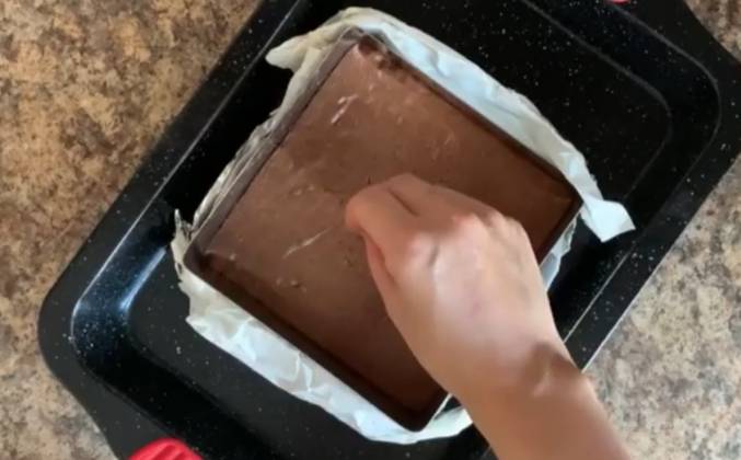 2. Шоколад и сливочное масло растопим на водяной бане или в микроволновке. Очень важно не перегреть! Растопленный шоколад и масло вмешиваем в тесто. Тесто готово. Выливаем его в форму и выпекаем в заранее разогретой духовке при 180 градусах, минут 15-17. Я использую металлическую квадратную форму без дна.