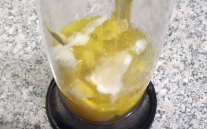 2. Отправляем в чашу блендера с яйцами, сок половинки лимона, туда же добавляем сыр пармезан, два подготовленных зубчика чеснока, слегка измельчим и добавим к остальным ингредиентам. Чеснока можно добавить больше или меньше - тут на любителя. Добавляем к остальным ингредиентам масло. Шеф повара советуют применять в соусе Цезарь именно оливковое масло. Переливаем его в чашу, по вкусу посолим соус. Не забудьте что сыр солёный! Обязательно добавляем свежемолотый перец, он очень ароматный.