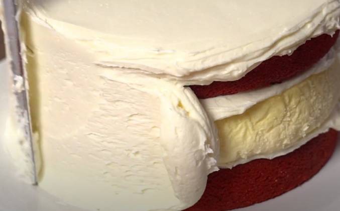 5. Равномерно распределите тесто между двумя формами и выпекайте в течение 23-26 минут или пока не появится зубочистка с несколькими влажными крошками. Извлеките бисквиты из духовки и дайте им остыть в течение 3-5 минут, затем выньте и положите их на решетку, чтобы закончить охлаждение. Кремчиз. Добавить сливочный сыр и масло в большую миску миксера и взбить до однородной массы. Медленно добавьте около половины сахарной пудры и взбивайте до образования однородной массы. Добавить ванильный экстракт и перемешать до полного сочетания.
