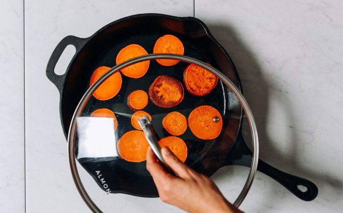 Лучший метод быстрого и легкого приготовления сладкого картофеля! Тонкая нарезка и быстрое обжаривание в закрытом виде дает идеальные, нежные бататы! Всего 2 ингредиента, 1 сковородка и 8 минут!