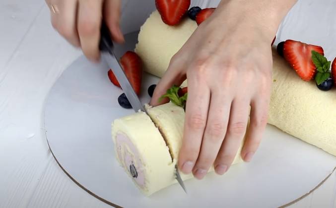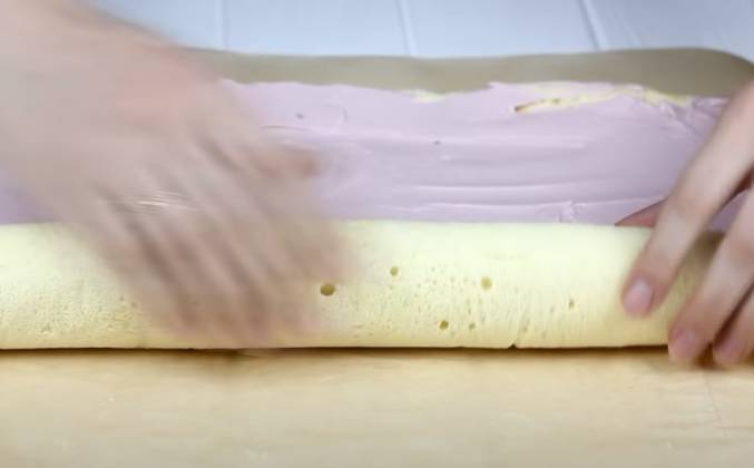 Как приготовить Нежный бисквитный рулет с кремом рецепт пошагово