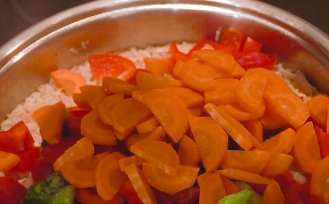 Как приготовить Рис с курицей и овощами на сковороде рецепт пошагово
