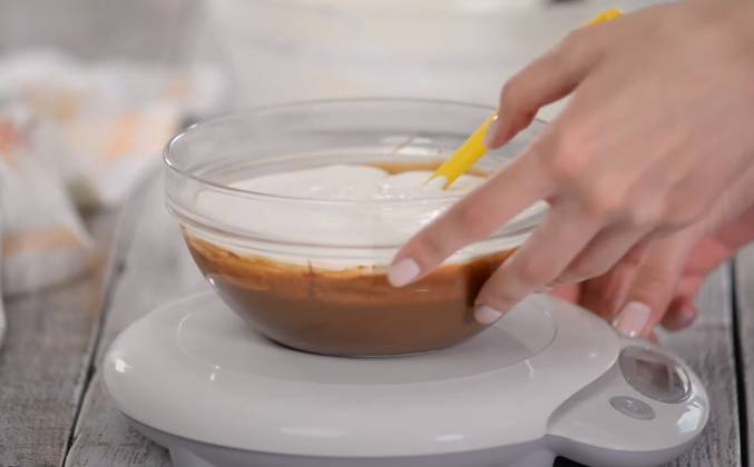 3. Желтки взбить с сахаром до однородности. В сотейник налить молоко и довести до кипения, снять с огня и влить часть молока к желткам, хорошо перемешать. Перелить полученную смесь обратно в сотейник к оставшемуся молоку, поставить на средний огонь и, все время интенсивно перемешивая венчиком, нагреть до 82°С, смесь должна слегка загустеть. Снять с огня и разделить на 3 равные части(у меня получилось по 190 грамм). В каждую часть добавить по 120 грамм шоколада, хорошо перемешать до полного растворения шоколада.