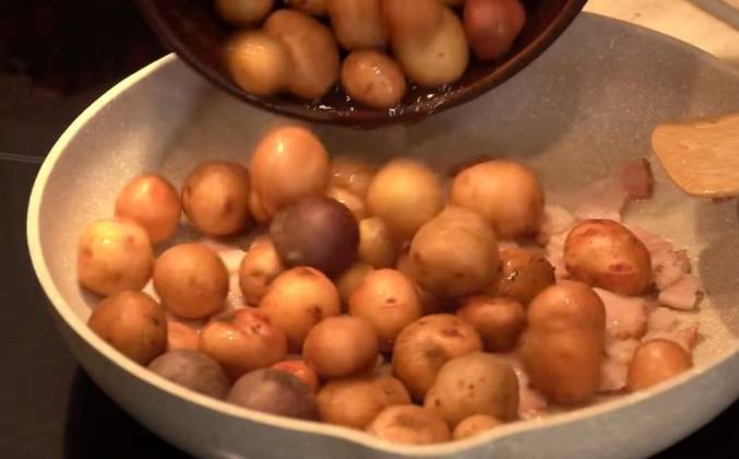 Как приготовить Жареная картошка с беконом на сковороде рецепт пошагово