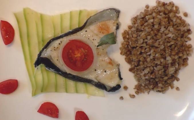 5. А тем временем рыбка дошла. И я на раздачу. Настроение отличное, и я решил что немного творчества не повредит. Еще бы - третье видео за неделю. Когда такое было? Салата и зелени у меня для сервировки не было, но выкрутился ж. Помните кабачковые слайсы в маринаде из 109 выпуск?. Тут бы они отлично пригодились. - Апчхи! Будь здоров, Кот! Порцию гречки без масла и соли и немного фруктов. Да-да, помидор - это фрукт. Не я так решил, так что нечего на меня кричать в комментариях. Лучше лайк поставьте, я и так тут полуголодный. Сегодня был нехитрый диетический обед. Должен сказать, что рыба вышла отменная. Ну а вкуснее всего получились почему-то помидоры, которые колечками. Кушайте меньше, но чаще. И берегите себя.
