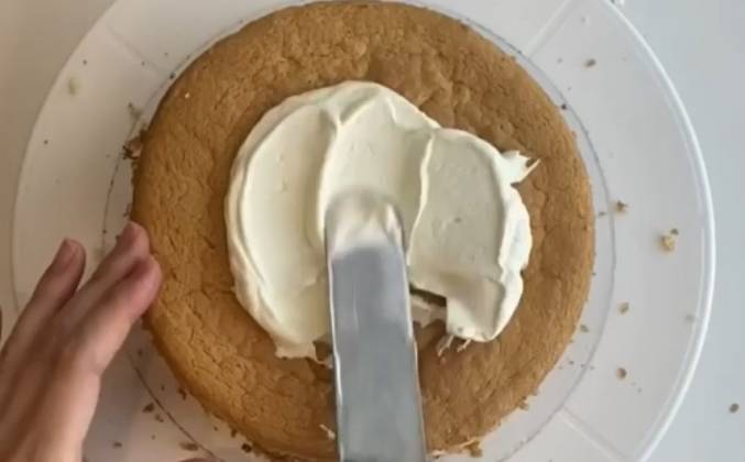 Бисквитный торт с кремом из сметаны и творожного сыра