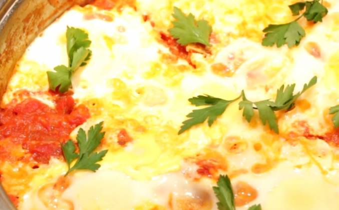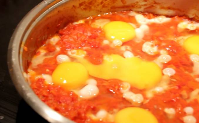 Яичница шакшука на сковороде