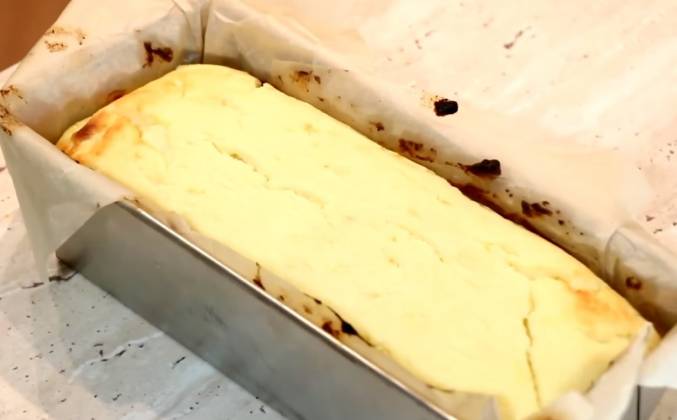 2. Уточняю, творог не должен быть мокрым, иначе сырник получится слишком плотным. Можно конечно мокрый творог подвесить в марле на пару часов, или положить его в дуршлаге, накрыть каким нибудь грузом и оставить. А можно просто купить магазинный. Мокрым точно не будет. Вкусным скорее всего тоже, но главное что мокрым он точно не будет. С этим я думаю разобрались. Подготовим сразу форму, чтобы потом не отвлекаться. Не слишком большую, в идеале хлебную, но на вкус разумеется, это не повлияет. Выстилаем ее пергаментом. Если нет - смажем растительным маслом и хорошенько присыпем мукой. Но с пергаментом, разумеется, достать сырник будет гораздо легче. В отдельные миски разделяем белки-желтки от 4 яиц. Миску с белками нужно очень хорошо помыть, вытереть насухо и капнуть пару капель лимонного сока, ну а затем уже руками распределить по внутренней поверхности.