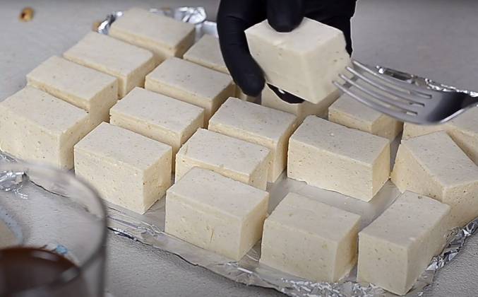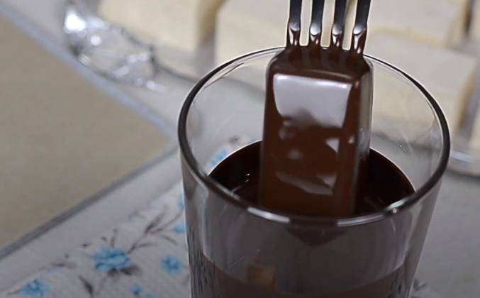 4. Глазурь. Растопить какаомасло и шоколад по отдельности, т.к. у продуктов разная температура плавления. Сначала растопить масло, потом шоколад. Влить в шоколад какаомасло и размешать до однородности. Перелить глазурь в узкий стакан. Остудить до 3035 ºС На доску или поднос постелить пергамент. Достать нарезанное суфле из холодильника. Наколоть 1 шт на вилку, окунуть в глазурь и сразу же извлечь. Постукивая пальцем по вилке, помочь стечь лишней глазури. Переложить конфету на пергамент. Остывающую глазурь можно подогреть в микроволновке буквально 10 секунд не больше, иначе будет очень горячей и стечет с конфет оставив совсем тонкий слой. Глазированные конфеты убрать в холодильник, чтобы глазурь быстрее застыла. Через полчаса конфеты можно переложить в коробку или пищевой контейнер.Видео рецепт ютуб ниже 👇