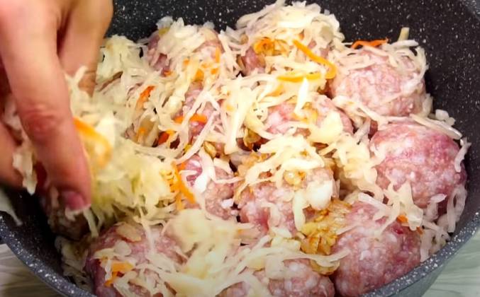 4. Заливаем заливкой, закрываем жаровню крышкой и ставим в разогретую духовку, готовим при 200 градусах, один час или ориентируйтесь по своей духовке, как я уже говорила можно приготовить на плите, мне нравится в духовке, поставил и забыл про нее, а по истечении времени духовка сама отключится. Достаем и подаем к столу, я люблю такую капусту с тефтельками с картофельным пюре, ну очень вкусно. Кстати квашеную капусту можно заменить на свежую, тогда ее лучше предварительно обжарить с луком и морковью.Видео рецепт ютуб ниже 👇