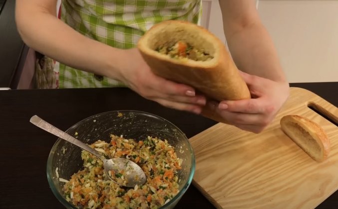 Как приготовить Фаршированный батон с селедкой и овощами рецепт пошагово