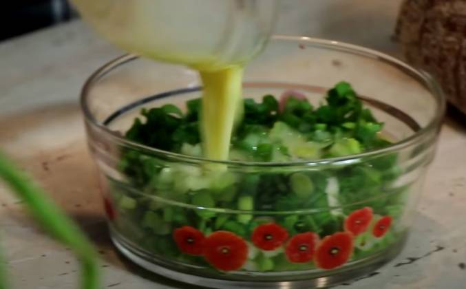 2. В итоге хлеб будет выглядеть вот так. Теперь к зеленому луку добавим 70 грамм растопленного сливочного масла. По желанию сюда же можно добавить по чайной ложке кунжута и семян льна. Хорошенько размешаем, выкладываем наш хлеб и начиняем его. Сначала равномерно распределим сыр между кусочков хлеба.