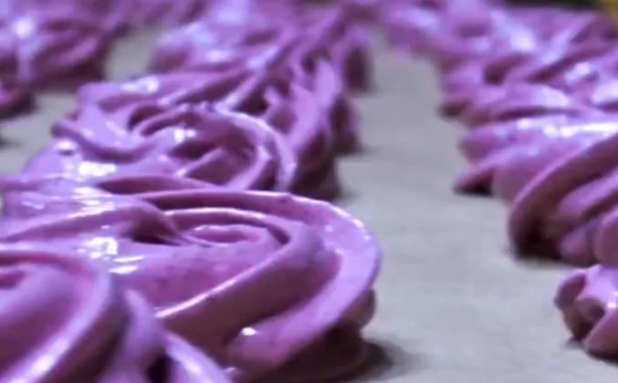 3. Подготовить листы пергамента, разложить на столе. Взбиваем пюре с половиной белка. Масса начнёт светлеть. Добавить вторую половину белка. Взбиваем до еще более светлой и пышной консистенции. А дальше начинаем вливать наш сироп тонкой струйкой, не торопясь и продолжая взбивать. Взбиваем смесь, пока она не остынет (агар-агар сам стабилизируется при 40 гр.). Как только заметите, что смесь стала плотнее и гуще (начала держаться на венчиках), сразу перекладываем в кондитерский мешок с фигурной насадкой и отсаживаем на пергамент. Оставляем хотя бы на 10 часов стабилизироваться. Затем аккуратно отделяем от пергамента, соединяем половинки и окунаем со всех сторон в сахарную пудру!Видео рецепт ютуб ниже 👇