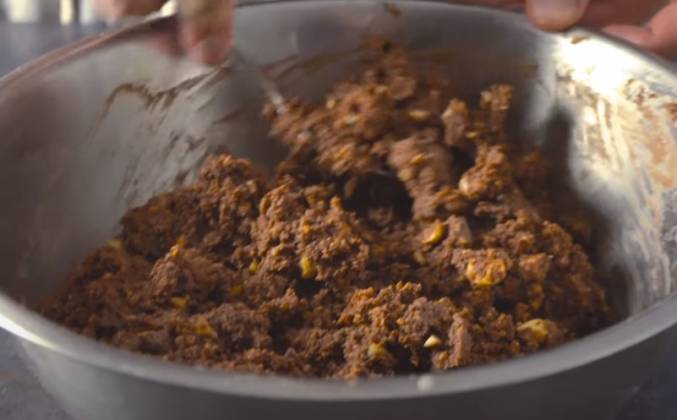 3. И последний ингредиент — молоко 200-300 граммов его понадобится, следите по консистенции теста. Мы использовали овсяное, но подойдет и обычное. Останется все только хорошенько перемешать. Далее ручками сформировать шарики или не очень шарики. Любая форма на ваш глаз и вкус. Можете есть сразу, или же дать им немного времени в холодильнике — там же и хранить. Приятного вам) Что ж.. данной порции нам с. ЯИ хватило на два вечера. Хотя.. если бы не Кот, то, возможно, хватило бы и на три. Так что берегите своих котов и себя.Видео рецепт ютуб ниже 👇