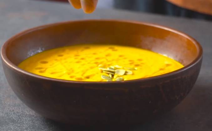 3. Потом проверьте морковь — если она мягкая, можем блендерить — до однородности. Если используете стационарный блендер, дайте супу остыть 15 минут. Ну а с ручным блендером можно сразу приступать к работе. После добавим 200 мл сливок. Обычные или, в нашем случаем, веганские (кокосовые сегодня) Только знаете что? Не надо потом, пожалуйста, писать: "Сергей, мы все исключили, оставив только морковь да воду — вышло не очень. Отписка. Ну.. да!