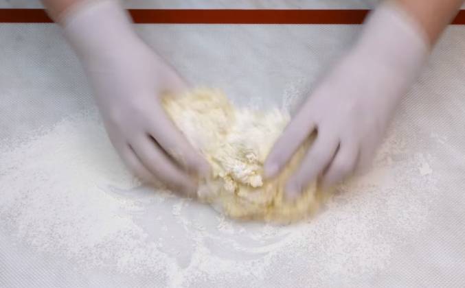 2. В зависимости от содержания влаги в твороге вам может понадобиться чуть больше муки, ориентируйтесь по консистенции теста - оно не должно быть жидким, но и не чрезмерно твердым. Рабочую поверхность присыпаем мукой, выкладываем все тесто и слегка его подмешиваем, чтобы с ним было удобно работать. Отрезаем от него небольшую колбаску, подкатываем ее и нарезаем на кусочки размером с грецкий орех, но не крупнее, т.к. при обжаривании они еще увеличатся. Скатываем ровные шарики и укладываем их на подпыленную мукой, поверхность. Если планируете приготовить пончики с "сюрпризом", сделайте небольшую лепешку из теста, уложите во внутрь начинку, тщательно защипните края и скатайте шарик.