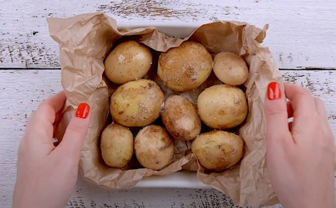 2. Оставь готовую свёклу, чтобы она полностью остыла. Переходим к картошке: выложи клубни в форму для запекания, сбрызни растительным маслом и хорошенько посоли. Запекай при температуре 200° в течение 45 минут, а после дай остыть. Натри на крупной тёрке огурцы, а затем и запечённую свёклу.