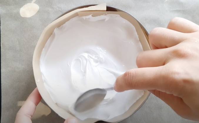 7. Собираем торт. Бисквит-по желанию пропитка из вишневого сока(я не пропитывала)- крем-безе-крем-бисквит (пропитка)-крем-компоте-крем-бисквит-черновое выравнивание.Видео рецепт ютуб ниже 👇
