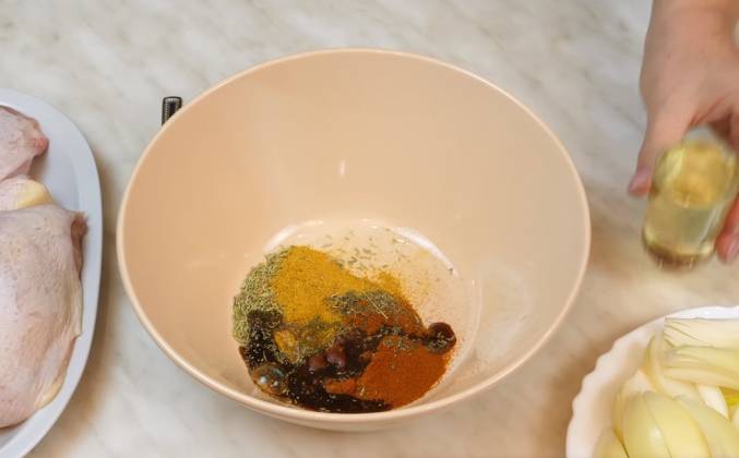 Запеченная картошка с курицей в духовке в форме для выпечки в пряном маринаде по рецепту канала Коллекция Рецептов.