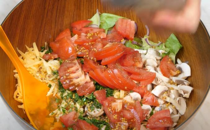 Как приготовить Салат с шампиньонами сыром и помидорами рецепт пошагово