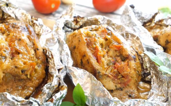 Запеченное фаршированное помидорами и сыром куриное филе в духовке по рецепту канала Коллекция Рецептов.