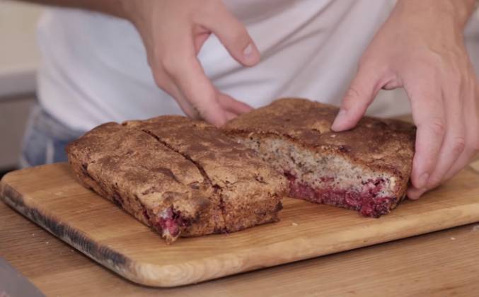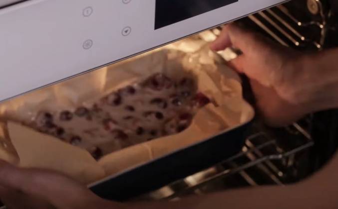 4. Это сводит с ума. Но, теперь нам нужно проверить его готовность. У меня дома нет зубочистки, так совпало, но у меня есть вермишелинка :) И теперь с помощью вермишелинки можно проверить готовность. Можно даже ее так оставить, чтобы она стояла просто. Пирог готов. Благодаря тому, что я сделал хорошие длинные борта у пирога, мне теперь легко его достать. Вот сюда и аккуратненько вот так снимаем. Вермишелинка больше не нужна, а пирог... Он получился очень пышным и очень сочным в то же время. И теперь посыпаем все сахарной пудрой. Для этого у меня есть чудо-сеточка для чая. Вот так вот засыпаем все сахарной пудрой и сверху, знаете что нужно сделать? Нужно положить вишенку на наш пирог. С самого начала, нужно съесть вишенку, без рук.Видео рецепт ютуб ниже 👇