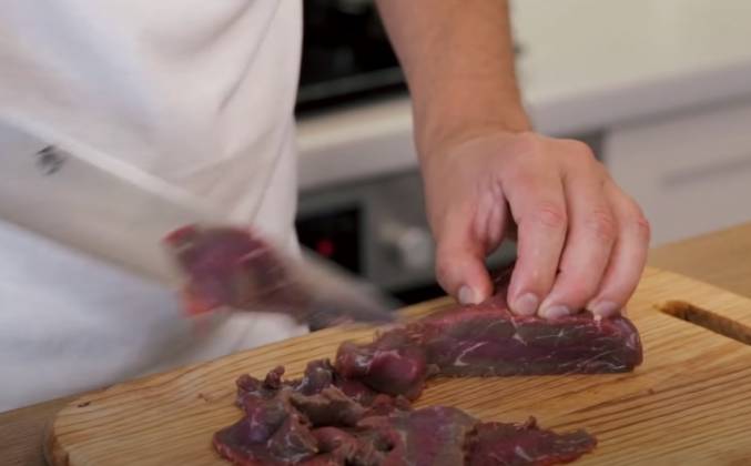 Дёнер Кебаба, или как говорят у нас Шаурма. Шаурма с телятиной в домашних условиях по рецепту Евгения Клопотенко. Для приготовления дёнер кебаба нам нужно говядина, красный лук, чеснок, томаты, лаваш кетчуп йогурт, соевый соус и много петрушки На самом деле Дёнер Кебаб - это национальная турецкая еда, которую просто очень много в Турции, но в Украине она чуточку видоизменилась и её стали называть шаурма. Шаурма у нас бывает очень часто некачественная и не очень хорошая поэтому я запрещаю вам покупает шаурму на улице и я вам разрешаю готовить ее дома. С самого начала нужно взять хороший кусочек говядины у меня он сейчас хороший - посмотрите. У неё очень много прожилок. Это обозначает, что мясо будет не жирное и это то что мне нужно для для моего Дёнера.