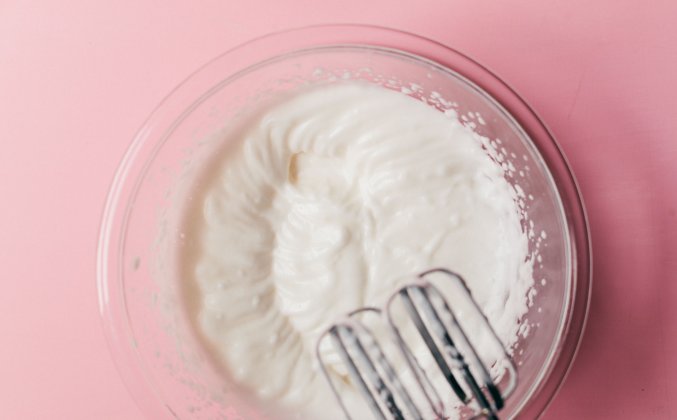 2.  В большую миску для смешивания добавьте аквафабу (если решили использовать ее) и порошок винного камня (по желанию) и взбейте миксером. Или взбейте белки с щепоткой соли во воздушных пиков. Добавьте оставшийся кленовый сироп (4 столовые ложки или 60 мл кленового сироп), ваниль, соль и снова взбейте. Наконец, влейте растопленное кокосовое масло и снова взбейте, чтобы все смешать. На этом этапе попробуйте аквафабу и посмотрите, не нуждается ли она в сладости. Вы можете добавить немного стевии или немного кленового сиропа. Но не переусердствуйте с кленовым сиропом, иначе он может сдуть ваш аквафаба.