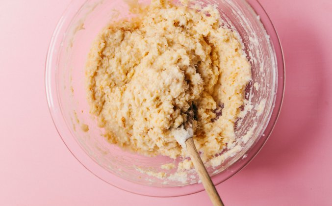 2.  В большую миску для смешивания добавьте аквафабу (если решили использовать ее) и порошок винного камня (по желанию) и взбейте миксером. Или взбейте белки с щепоткой соли во воздушных пиков. Добавьте оставшийся кленовый сироп (4 столовые ложки или 60 мл кленового сироп), ваниль, соль и снова взбейте. Наконец, влейте растопленное кокосовое масло и снова взбейте, чтобы все смешать. На этом этапе попробуйте аквафабу и посмотрите, не нуждается ли она в сладости. Вы можете добавить немного стевии или немного кленового сиропа. Но не переусердствуйте с кленовым сиропом, иначе он может сдуть ваш аквафаба. 3.  Начните с добавления 3/4 вашего кокоса к аквафабе и перемешайте, чтобы объединить ингредиенты. Если тесто выглядит слишком влажным, добавляйте немного кокосовой стружки за раз, пока не получите очень влажное «тесто» . Если тесто слишком влажное, оно не поднимется в духовке. Если будет слишком сухое, печеньки будут рассыпчатыми. Поэтому не забудьте добавлять немного за раз, пока не будет получена правильная текстура. Если вы добавите весь кокос, и тесто все еще кажется слишком влажным, то можно добавить немного необжаренного кокоса.