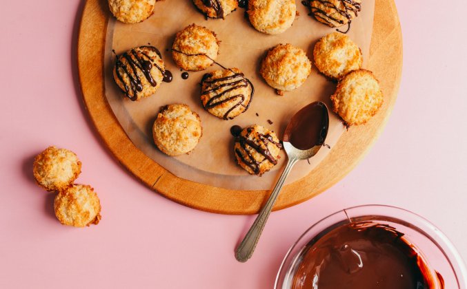 3.  Начните с добавления 3/4 вашего кокоса к аквафабе и перемешайте, чтобы объединить ингредиенты. Если тесто выглядит слишком влажным, добавляйте немного кокосовой стружки за раз, пока не получите очень влажное «тесто» . Если тесто слишком влажное, оно не поднимется в духовке. Если будет слишком сухое, печеньки будут рассыпчатыми. Поэтому не забудьте добавлять немного за раз, пока не будет получена правильная текстура. Если вы добавите весь кокос, и тесто все еще кажется слишком влажным, то можно добавить немного необжаренного кокоса. 4.  Отмерьте по 1 столовой ложке и выложите на противень с пергаментной подкладкой печенье. Выпекать при температуре 162 C в течение 25 минут. Затем увеличьте температуру до 176°С и выпекайте еще 8-10 минут или до золотисто-коричневого цвета и полутвердого печенья на ощупь. Подавайте или приготовьте еще шоколадное покрытие, по желанию.