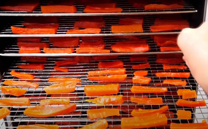 3. По времени у меня занимает перерыв 4-5 часов, морковь должна стать полупрозрачной, теперь остывшую морковь ставим на огонь, подогреваем примерно до 30 градусов и откидываем на друшлаг, дадим моркови стечь, примерно минут 10, сироп получается тоже вкусный, можно использовать его для пропитки бисквита например. Раскладываем морковь на решетке или на противень, если будете сушить в духовке, я сашу в дегидраторе, устанавливаем решетки, теперь устанавливаем температуру и время, я сушу при 70 градусах пять-шесть часов.