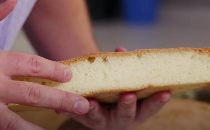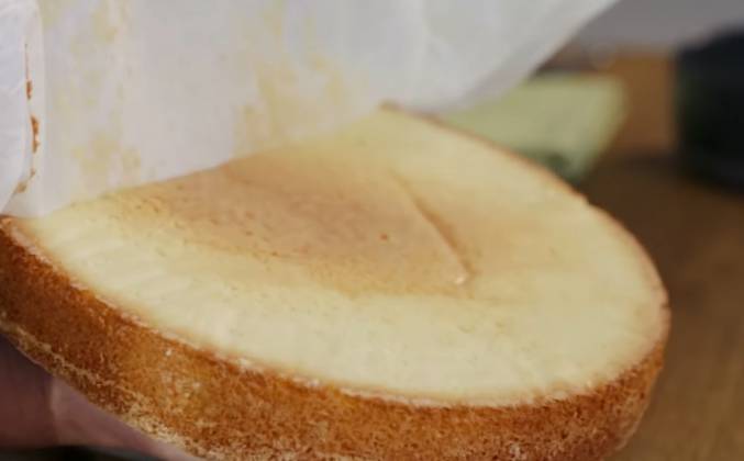 4. Снизу вот такая хрустящая корочка,а внутри просто нежная и прекрасная структура.Я конечно не хотел его кусать,но попробовать нужно. Он прекрасен я думаю что с ним любой торт будет просто идеальным. Самое главное что вам не нужно мыть много посуды потому что вы все сделали в одной емкости. Теперь вы точно знаете как приготовить бисквит.Видео рецепт ютуб ниже 👇