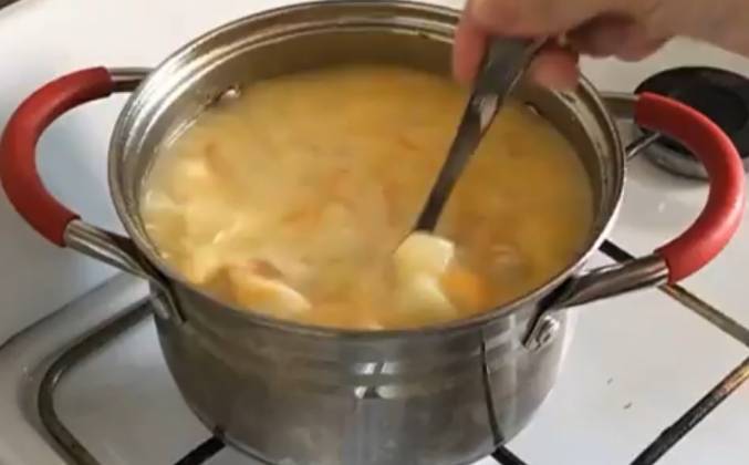2. Морковь и лук чуть обжарила, тоже - в бульон.