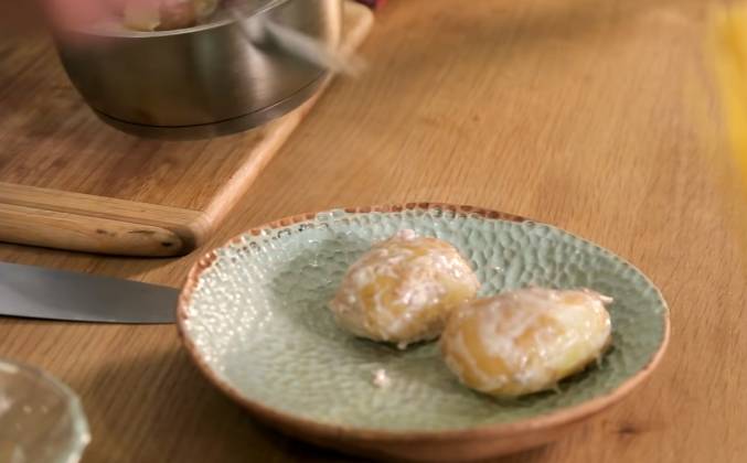2. Такой маленький лайф-хак из Парижа. Сейчас возьму и добавлю картошки микс мускатного ореха и корицы.Почему я так делаю?потому что я знаю что существует один очень вкусный вид молодой картошки он называется какой то он имеет название но суть его такова что,эта картошка имеет очень сильно насыщенный мускатным орехом вкус,и когда попробуй эту картошку в первый раз я был очень сильно удивлен,потому что никогда в жизни этого я не ел,и это было очень вкусно.Но после последние три года я не могу найти этот сорт картошки поэтому я решил отварить картошку с мускатным орехом,и получится такая как бы почти вот та моя самая любимая картошка,посмотрим.