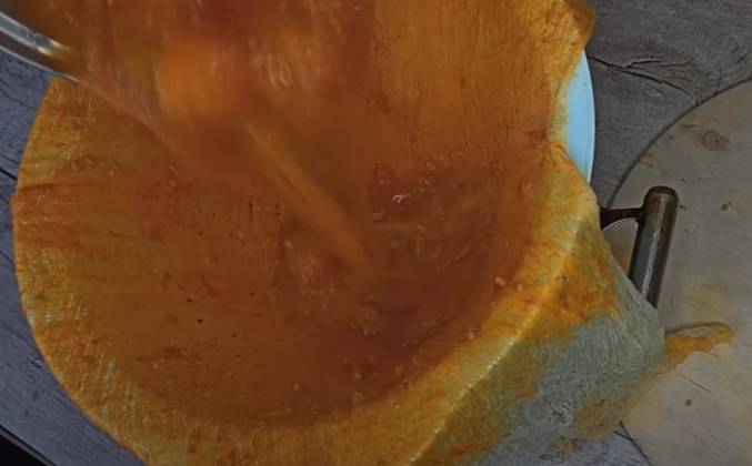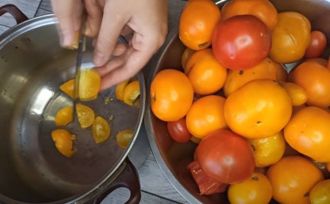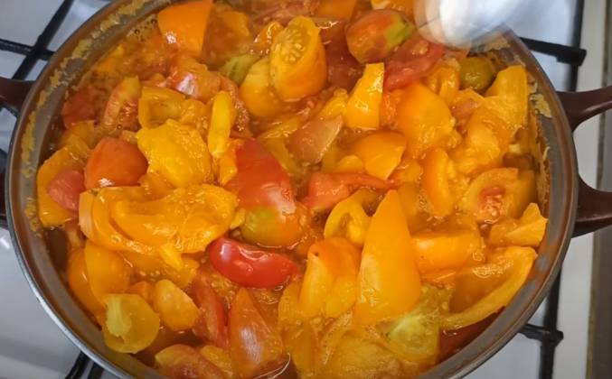 2. Только необходимо хорошо мешать, что бы ничего не пригорало. Варить постоянно помешивая до размягчения помидор, примерно около часа. Процедить помидоры при помощи друшлака и марли.