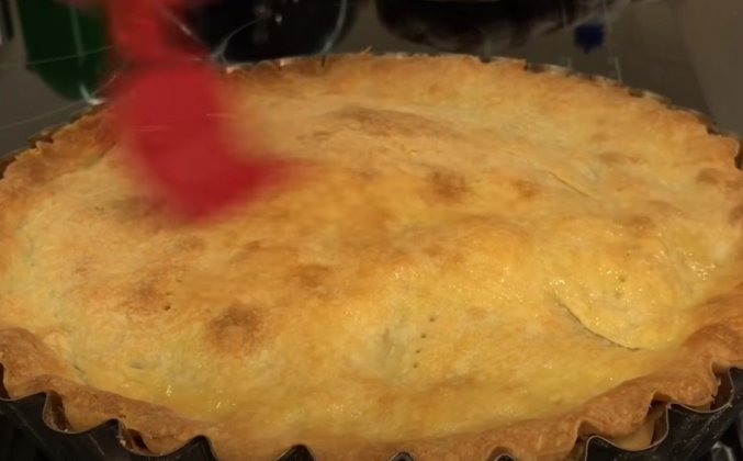 4. Выкладываем начинку слоем. Раскатываем оставшуюся часть теста, накрываем пирог и тщательно защипываем края. Излишки теста удаляем и делаем несколько проколов вилкой на поверхности пирога. Выпекаем в разогретой до 180 градусов духовке 40-50 минут. За пять минут до готовности смазываем яйцом. Готовый пирог остужаем в форме, затем аккуратно достаем, перевернув сначала на доску, а потом на блюдо для подачи.Видео рецепт ютуб ниже 👇